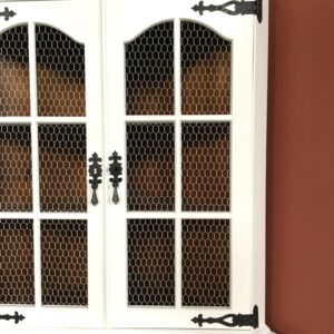 A cor branca e a rede que substituiu o vidro nas duas portas do corpo superior, deram a esta cantoneira o aspecto mais leve de que precisava para se enquadrar na sala de uma casa de férias.