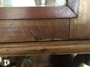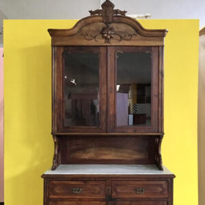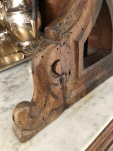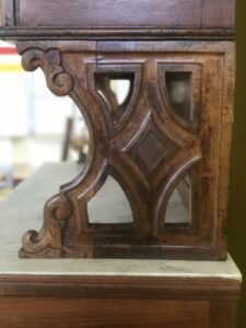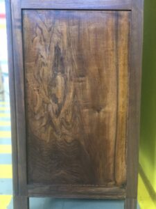 Foi limpo a fundo, peças substituídas, a folha restaurada e acabado a cera de abelhas.