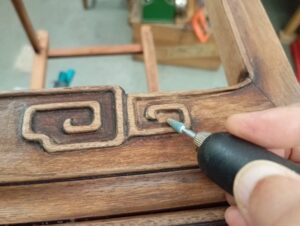 Adoramos pau-rosa (!!) e dedicámos horas infinitas a libertar a madeira do verniz velho e já escurecido de muitas décadas de uso.