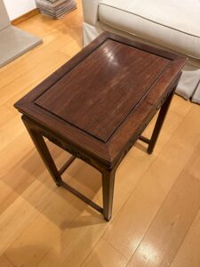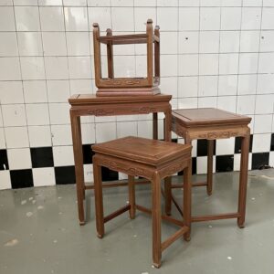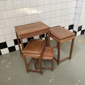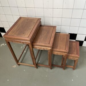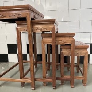Conjunto de quatro mesas de encaixar, chinesas, em madeira maciça de pau-rosa.