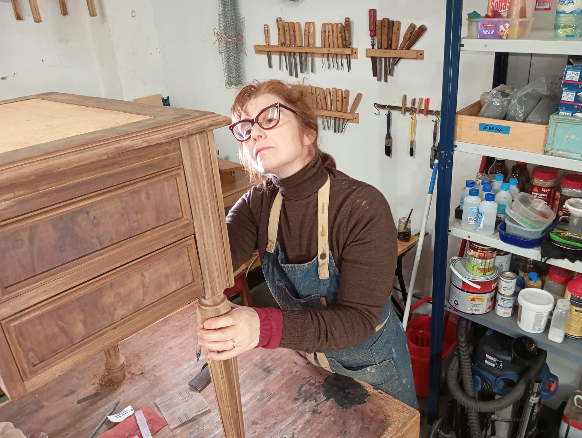 Em 2020, surgiu a oportunidade de concretizar um projecto de longa data e uma viragem em direcção a uma actividade mais criativa, manual e artesal: o trabalho com madeira. E assim chegou à Fundação Ricardo do Espírito Santo Silva, onde se formou como Marceneira Embutidora / Entalhadora.